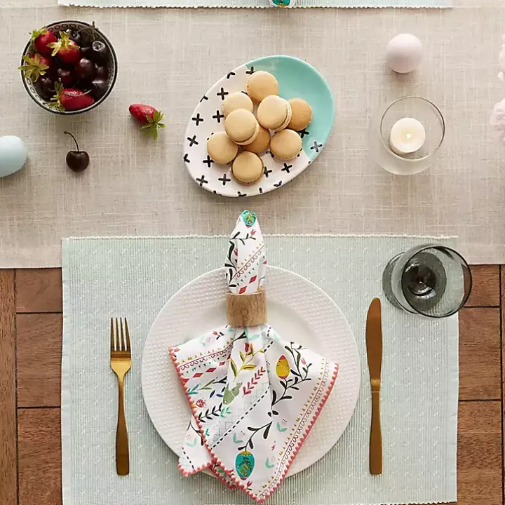 The set of Pastel Misty Blue Dobby Placemats will add a subtle pop of color and texture to your tablescape! Featuring reversible designs, they’re perfect for elevating your everyday meals.