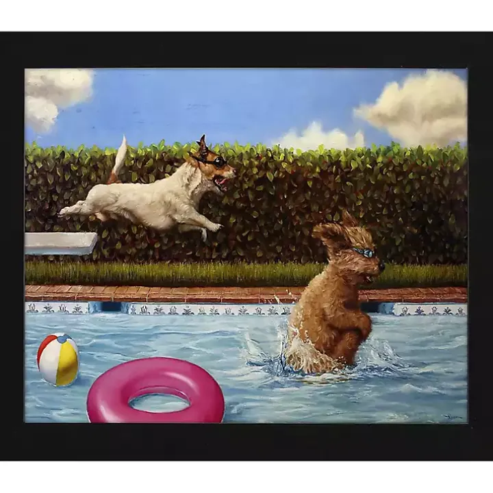 These doggies will make a splash on your living room wall! Our cute Pool Party Framed Art Print will bring plenty of laughs and smiles into your home.