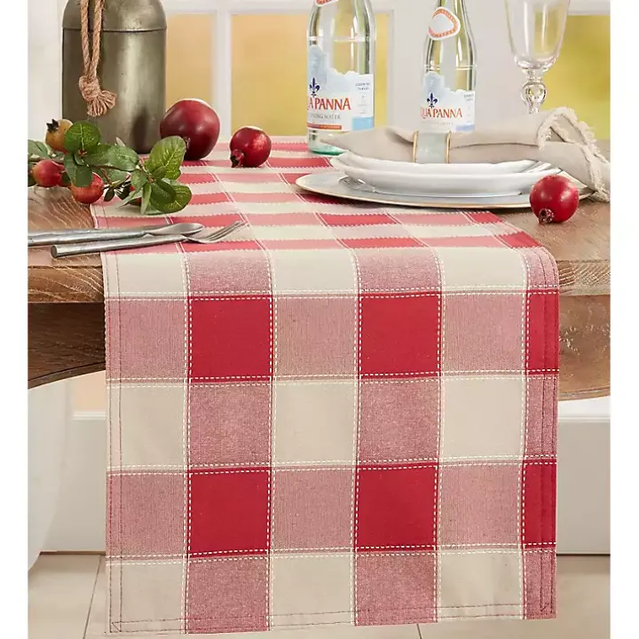 Update your daily meals and dinner parties with this Red Block Plaid Table Runner. With its warm tones, it will add a quaint, farmhouse charm to your table!