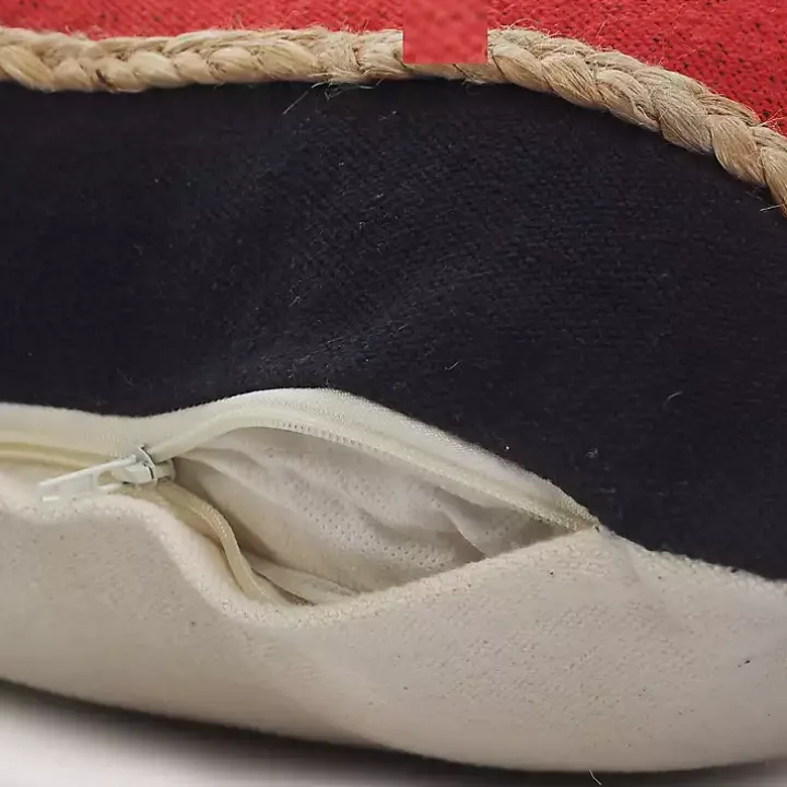 This Red & Navy Nautical Rope Lumbar Pillow features a blue and red striped design and textured jute braiding. It’s a wonderful accent for the nautical or Americana home!