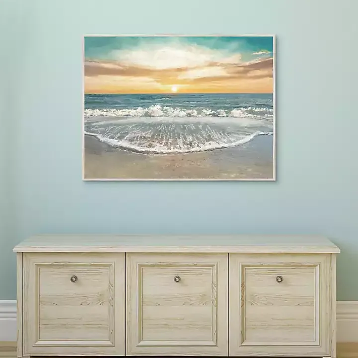 Let the waves of the Seafoam Sunrise Canvas Art Print cleanse your home with its gentle waves. The beauty of this piece is perfect for creating a calming, coastal atmosphere!