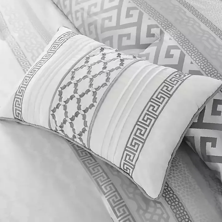 If you want to add elegance and style to your bedroom, this comforter set is perfect. The Silver Geometric Stripes 7-pc. Queen Comforter Set will look great in any bedroom.