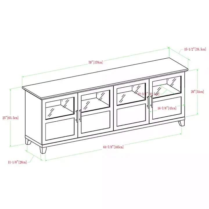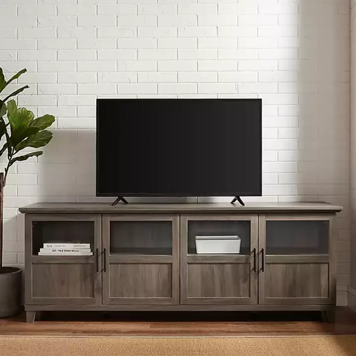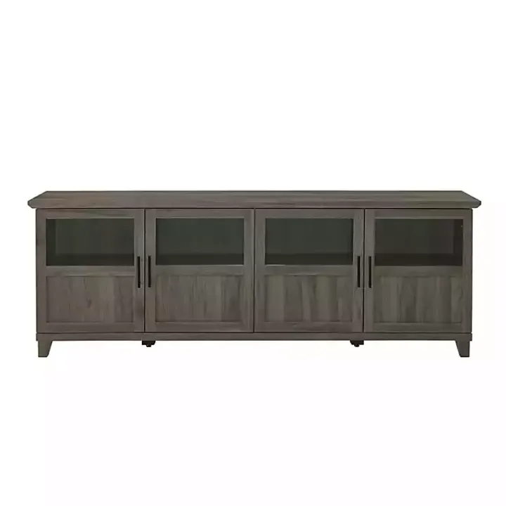 Tempered glass and wooden doors give our Slate Gray Glass Paneled Door TV Stand a classic, refined look. Behind these beautiful doors, there are plenty of spots to store your favorite belongings.