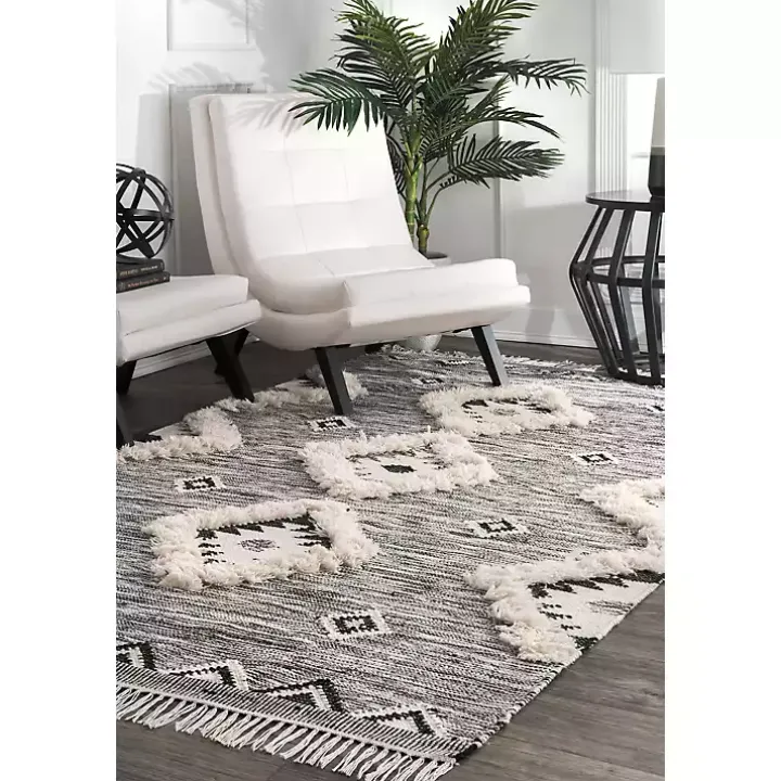 Our Sofia Moroccan Fringe Area Rug features a chic, western design with hand-tufted diamond details and a chevron trim. Its fringe trim and neutral palette will stun in your living space!
