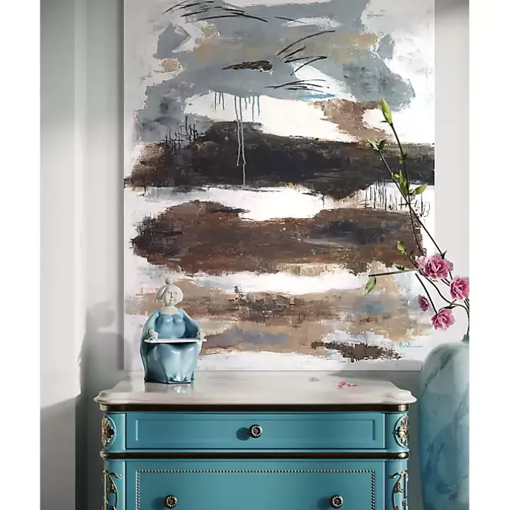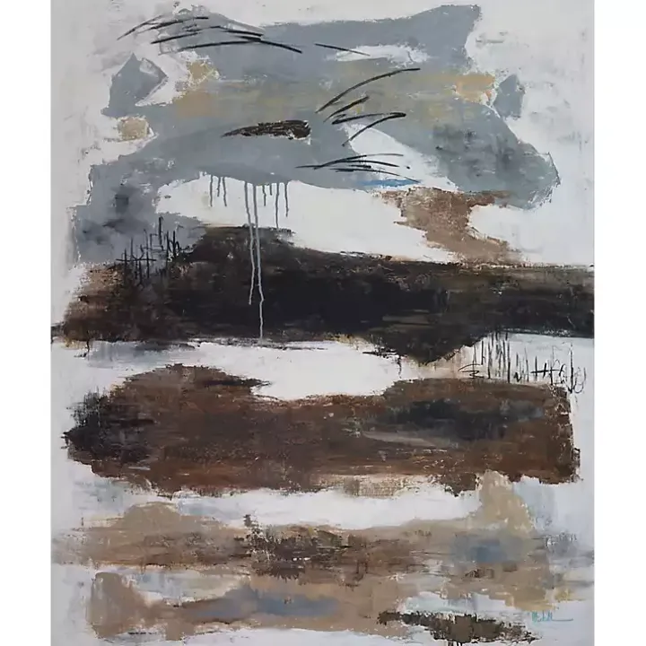 Hues of blue, gray, brown, and black muddle together to create the abstract design of this St. Croix Canvas Art Print. This intriguing artwork will add an element of drama into any space.