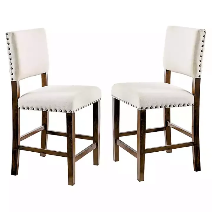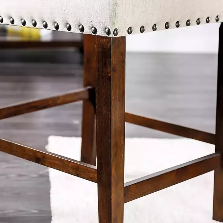 Update your home seating with these Upholstered Cherry Finish Counter Stools. Featuring comfortable seats and a rich, sophisticated finish, this set is sure to elevate your kitchen or dining room!