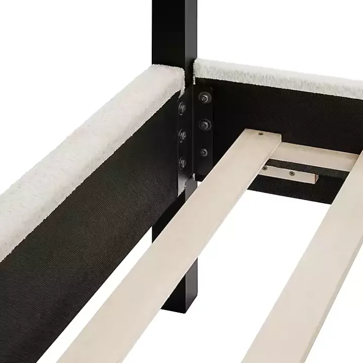 Elevate your bedroom with this White Boucle Upholstered Black Canopy Queen Bed! This modern bed is perfect for upgrading your space with a luxurious, contemporary touch. You’ll love the cozy padded boucle headboard!