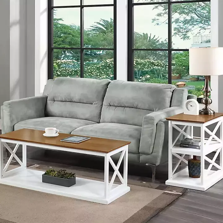 Upgrade your living room with this White Two-Tone Wood Double X Sides Accent Table! With an eye-catching design and plenty of storage space, you’ll love styling this table to complement your space.